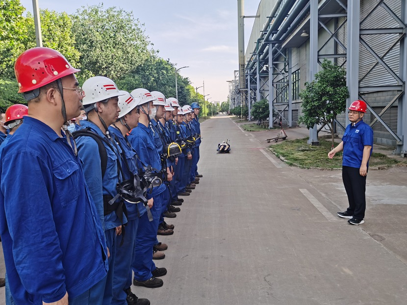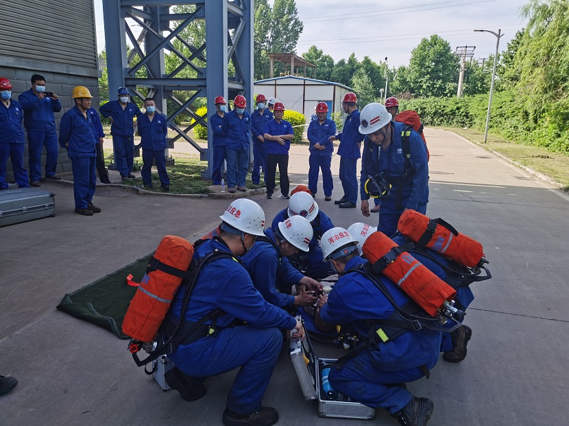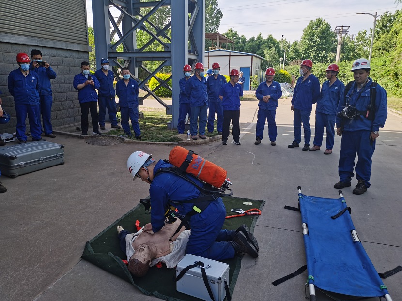 本次演練在公司安全總監(jiān)侯國棟的一聲令下,演練拉開序幕,由公司應(yīng)急救援隊組成的現(xiàn)場作業(yè)組、應(yīng)急救援組、疏導(dǎo)警戒組、醫(yī)療救護組等4組演練人員開展救援工作,相繼展示了事故發(fā)生后的事故報告、現(xiàn)場秩序維護、氣體檢測、救援三腳架搭設(shè)、安全防護裝備佩戴、通風(fēng)設(shè)備使用、人員救護等應(yīng)急處置全過程。